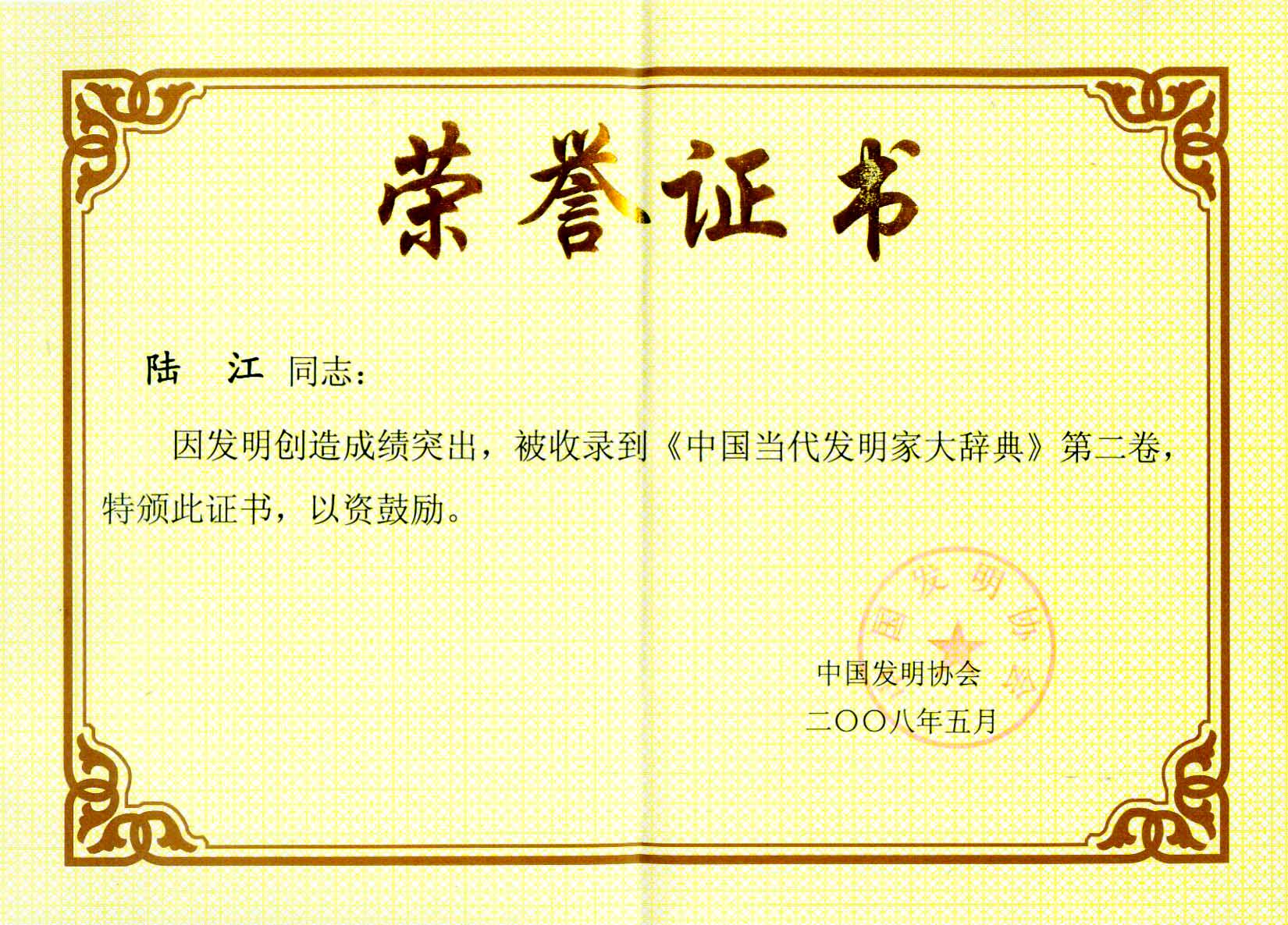 陸江的論文獲一等獎榮譽證書-- 陸江論文獲創新論文獎牌